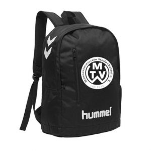 Ein klassischer hummel® Rucksack mit Platz für einen Laptop und mit verstellbaren Trägern, einer gepolsterten Rückseite und erweiterbaren Taschen. Der Rucksack verfügt über ein gedrucktes Logo und klassische Winkel sowie eine Reißverschlusstasche vorne. Gepolsterte Rückseite, für Laptop kompatibel, erweiterbare Tasche, Reißverschlusstasche vorne. Höhe 44,5cm, Breite 34 cm , Tiefe 19cm. Dieser Rucksack wird mit dem Logo des MTV Wolfenbüttel bedruckt. Art. 206996